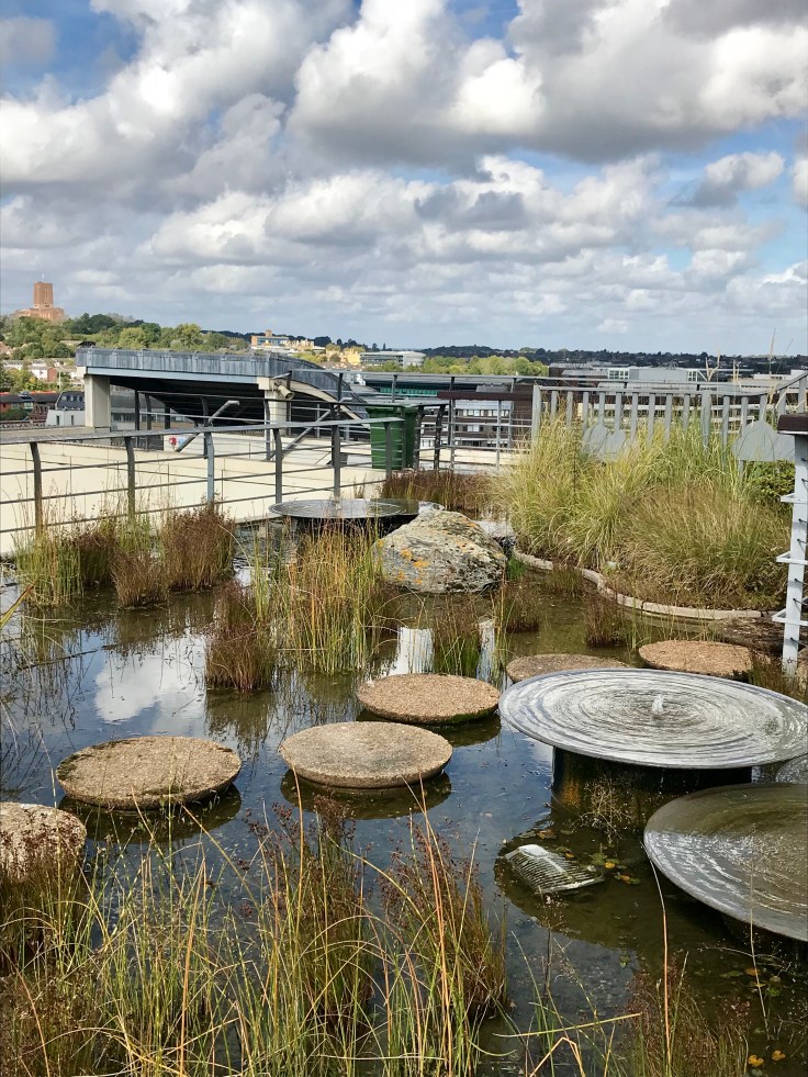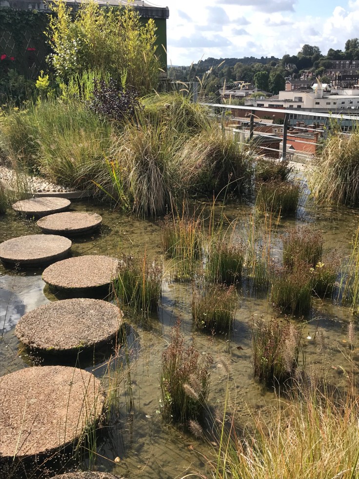 Sadly the garden fell into decline, firstly with the demise of the waterfall followed by the demolition of the restaurant. Luckily, along with the creation of a new tea room, the roof garden has been resurrected. Much of the original structure remains with the stepping stones and curved beds still in place with small holes within them to allow water from the pool to nourish the plants.
