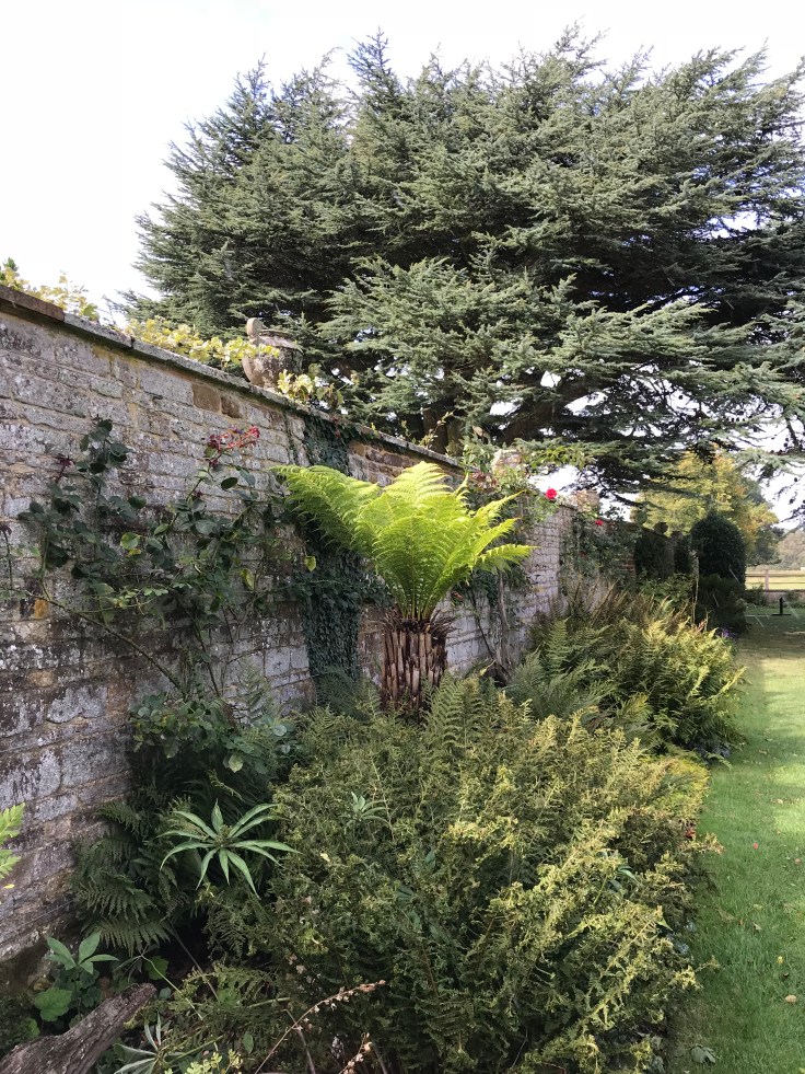 The main garden, also known as the Top Terrace, is laid out in a formal style, taking advantage of the sweeping vistas across the adjacent parkland. An impressive Cedar of Lebanon stands beside a smaller garden, the Green Court, where espalier pears were hanging heavily in the autumn sunlight whilst ferns languished in their mini stumpery on the shadier side of the garden.