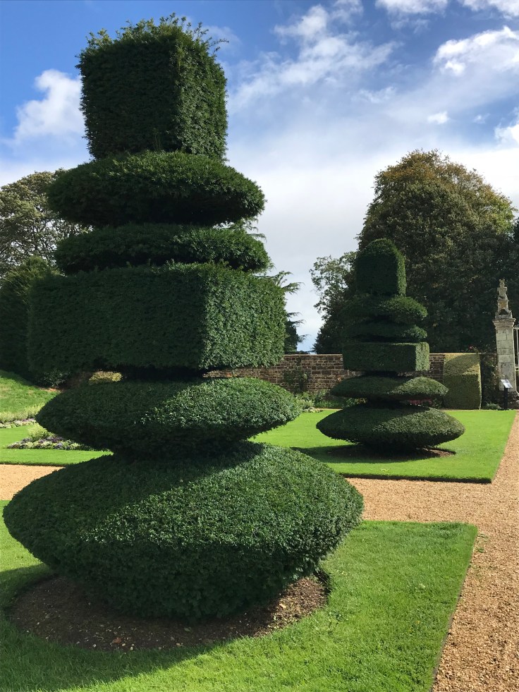 A triumphant row of topiary yews lead the eye to the statue of the Shepherd Boy with quite a story behind it. The statue was erected by the Dryden family to remember a time during the Civil War when Lady Dryden, a Cromwell supporter, entertained Roundhead soldiers in the great kitchen of the house. The Shepherd Boy, posted as a lookout blew a warning of enemy approaching. The Roundheads took shelter in the nearby Priory church & a skirmish ensued with musket balls & shot being fired at the church – the marks can still be seen today! The Cavaliers decided to smoke out the Roundheads who had no choice but to surrender & were subsequently imprisoned in nearby Banbury, only to be later released. The poor shepherd boy lost his life for his efforts but remains in the memory of the family through his statue.