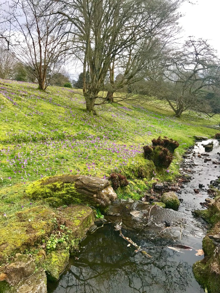 From the lawns beside the house the estate continues, its paths winding through a hilly expanse of grass bearing thousands of Crocus tommasinianus beside a stream that tumbles towards pools where in a few weeks time, Primula prolifera (Candelabra primrose) will be flowering. For now, Camellia and deliciously scented Daphne provide floriforous colour.