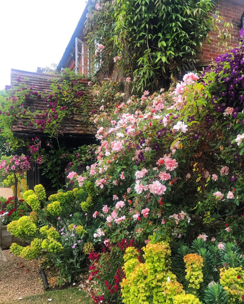 Another charming Surrey garden, Lower House has the prettiest facade, smothered in clematis and roses and a garden in which you can lose yourself. This is an immaculate and mature garden with a very interesting story. The owner revealed to me that a local resident had recently come across drawings by Gertrude Jekyll that they believed to be designs for the garden at Lower House. Much of it has disappeared but the Rose Walk is still there, with standard Ballerina roses underplanted with lavender and beside this, a rectangular lawn is laid out in the place that would have been the Nut Walk (a Jekyll staple).