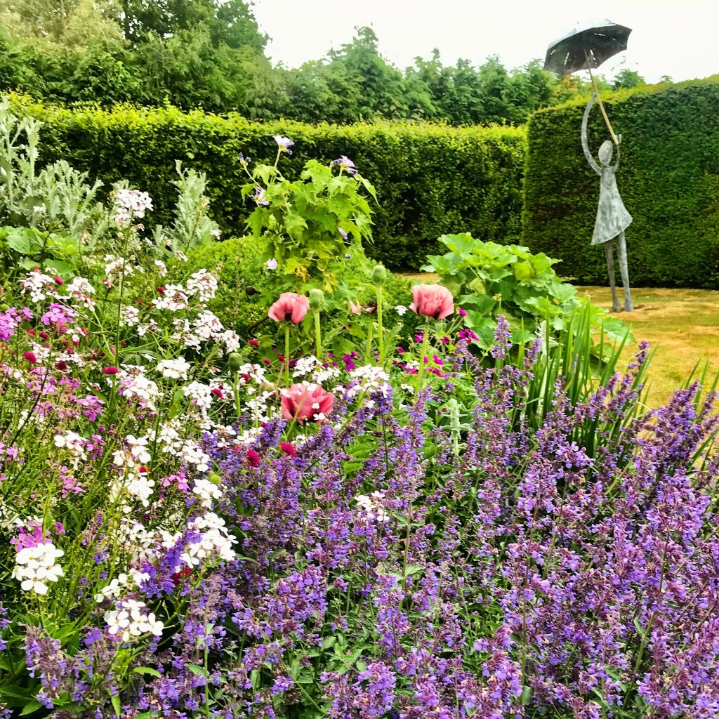 Sculptures are dotted around, varying in size – smaller sculpture nearer the house. A focal point at the end of the main vista features a large metal hoop sitting amid frothy Verbena bonariensis. In the adjacent meadow area, a modern angular sculpture contrasts against soft grasses. A further beech avenue leads back down towards the house and I was amazed to discover that the seemingly large garden is actually only a third of an acre in size! This garden is testament to the vision of the owners and garden designer and is absolutely well worth a visit.