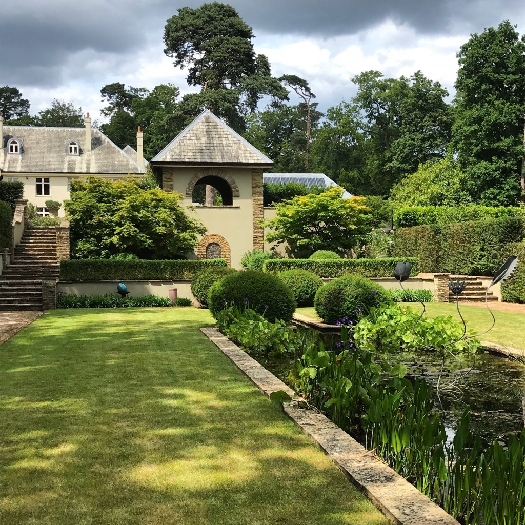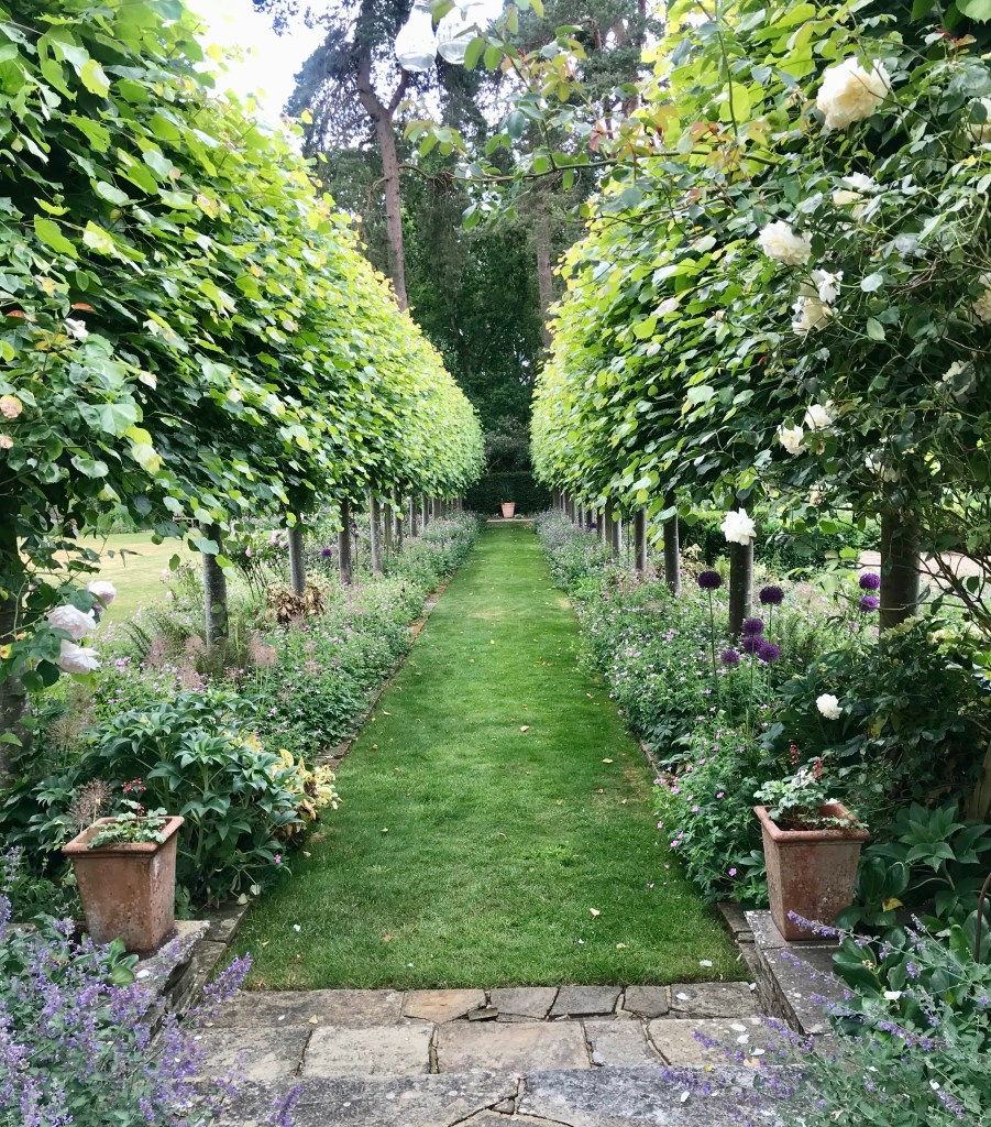 I started off the month of June visiting two neighbouring gardens in Shackleford, Surrey. Norney Wood is an Arts and Crafts style house with a redesigned garden by Acres Wild Garden Design using Gertrude Jekyll’s style of garden as inspiration. The formal garden is laid out on two levels, with an immaculate lawn flanked with soft pink roses and lavender. To one side, a pleached lime avenue underplanted with hardy geranium stretches away from the house and the whole area is surrounded by mature trees.