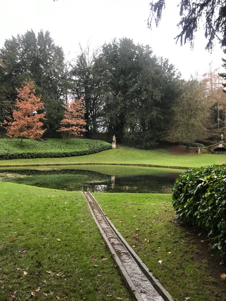 Rousham was designed to be enjoyed by taking a certain route, past the main house towards a slightly alarming sculpture of a lion attacking a horse. A wooded path leads you to ‘Venus’s Vale’ – an open glade with dark pools and statues of Pan and Hercules. A narrow rill flows into the upper pool and if followed, leads you through sculpted laurel beneath mature trees soaring from the depths of the boxy laurel. A clear and shallow bathing pool comes an unexpected surprise and onwards we walk towards an open glade beside the Palladian style Townesend’s Temple and back along the river Cherwell, winding through another woodland path, before suddenly we seem to be back in the dell with the pools; this time the lower pool comes into view and beyond, a rich honey coloured stone Arcade.