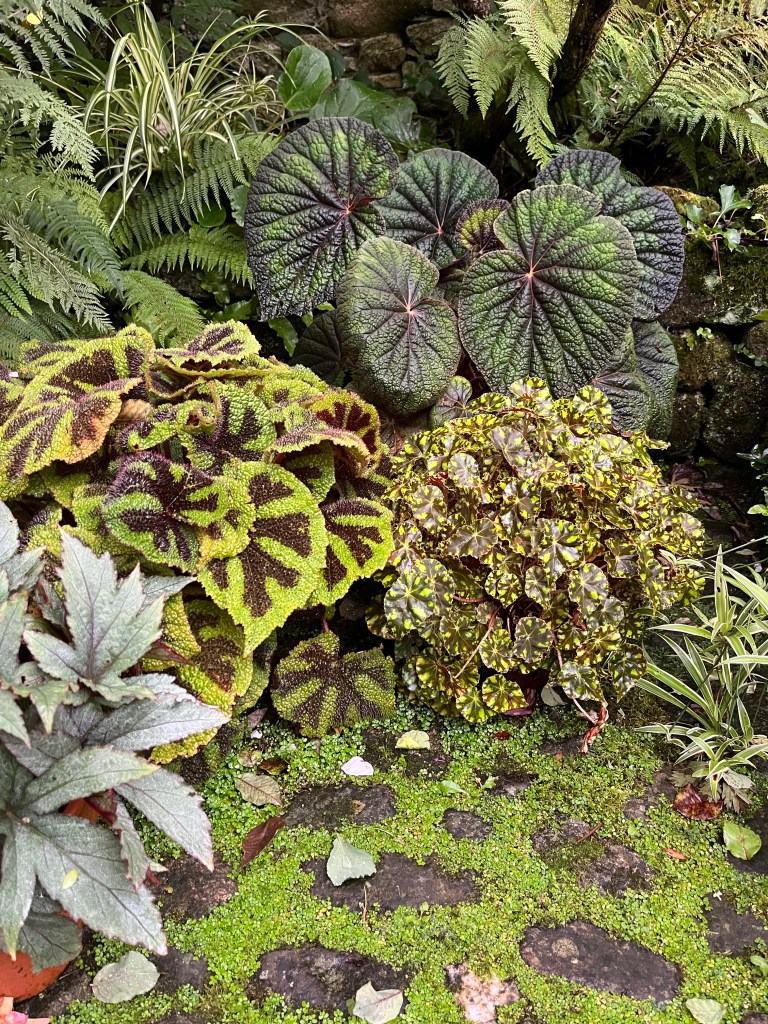 From the rear of the house, circular granite steps rise from a cobbled courtyard (resplendent with an huge array of plants in containers – the colours are glorious). Within the courtyard are ancient granite walls from a previous building, where T.J has created a shady fernery. Much has been crammed into the courtyard, including a tiny pond and potting shed.